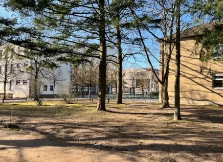 – l’École Jean-Paul II qui rassemble des élèves de la Toute Petite Section de maternelle au CM2 dans un parc arboré de sept hectares en bordure de la très belle forêt de Compiègne. Toutes ces classes sont réparties dans quatre bâtiments différents. Les plus jeunes (maternelles et CP) sont répartis dans trois bâtiments indépendants. Ce sont de petites structures de trois à cinq classes, avec des salles de classe de maternelle rénovées et très spacieuses. Les espaces récréatifs y sont multiples et de pleine nature. Les lieux et les temps sont organisés de façon à ce qu’il n’y ait pas de mélanges d’âges. Chaque niveau de classe a son espace de récréation distinct. Les classes maternelles ont leurs bâtiments, comportant la classe, la salle de repos, les sanitaires, la salle de motricité et la cour de récréation attenante.