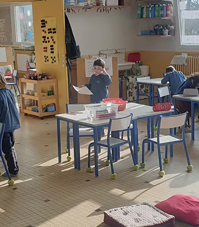 Les classes de maternelle sont spacieuses et permettent aux élèves de se déplacer sur différents ateliers. Les professeurs des écoles, accompagnés des aide maternelles de la TPS à la GS, mettent en place une pédagogie personnalisée afin de répondre aux besoins de chacun, en stimulant ou soutenant les élèves, (plan ou contrat de travail, manipulation de matériel Montessori, tutorat, groupes de besoin, exercices différenciés…).